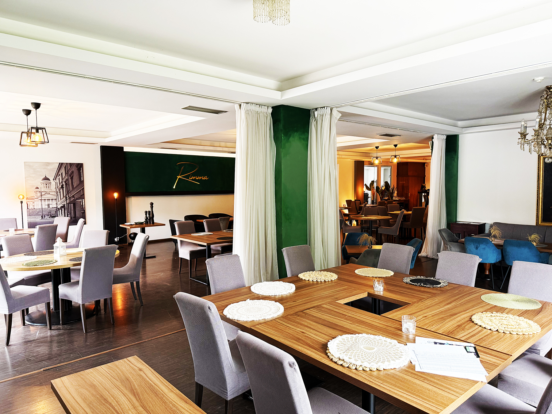V Rimma Restaurant spojujeme to nejlepší z moderní gastronomie a domácí pohostinnosti. V kuchyni ctíme suroviny od lokálních dodavatelů, techniky si půjčujeme ze světa a na talíř servírujeme čisté chutě s důrazem na sezónnost. Atmosféru dotváří elegantní interiér v tmavé zeleni, zlaté detaily a praskající oheň v krbu.